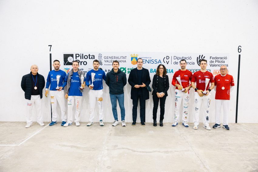 Van fer el lliurament de premis l’alcalde de Benissa, Arturo Poquet; el regidor d’Esports, Adrián Cabrera; i la vicepresidenta de la Federació de Pilota Valenciana de clubs i escoles d’Alacant, Elena Gómez
